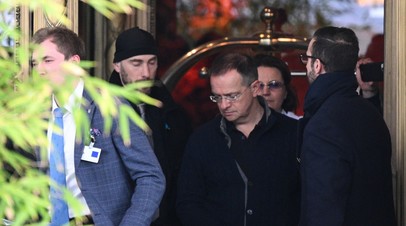 Помощник президента России, глава российской делегации на переговорах по украинскому урегулированию в Женеве Владимир Мединский провёл закрытые переговоры после основной части в отеле InterContinental.