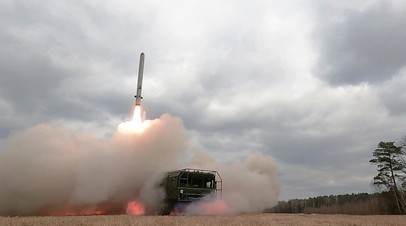 Также Минобороны опубликовало кадры удара расчёта ОТРК «Искандер-М» по площадке подготовки и запуска ударных БПЛА-камикадзе ВСУ дальнего действия. Цель была выявлена оператором разведывательного беспилотника в районе н. п. Голубовка (30 км западнее Краматорска).