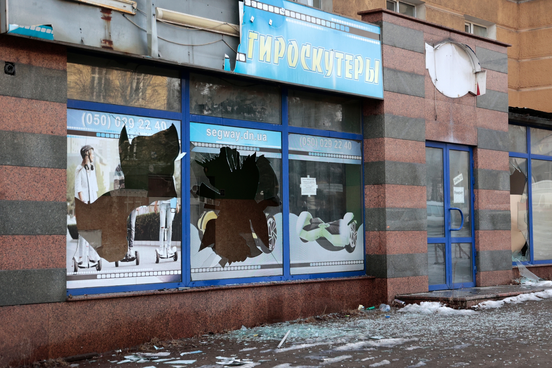- Витрины магазина в центре Донецка, повреждённые в результате обстрела со стороны ВСУ