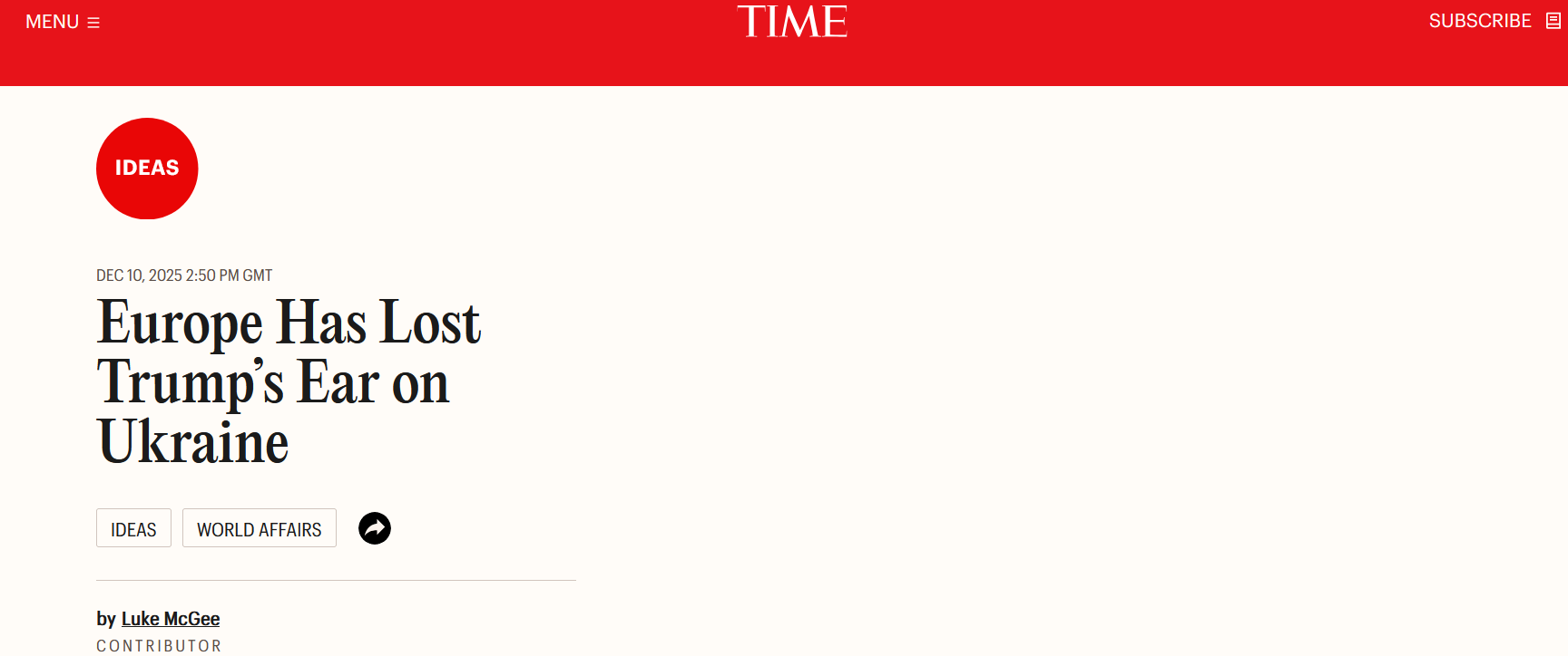 «Хотя исход конфликта имеет большее значение для Европы, чем для Америки, он (Трамп. — RT) по большому счёту отстранил европейцев от процесса мирного урегулирования на Украине и ведёт переговоры через их головы напрямую с Кремлём, — констатирует обозреватель Time. — Учитывая, что Трамп, по-видимому, испытывает к Украине и Европе всё большее презрение, как видно из недавно опубликованной Стратегии нацбезопасности его администрации, складывается впечатление, что континент (Европу. — RT) совершенно не берут в расчёт при принятии решений о его собственном будущем в самый бурный период его послевоенной истории».