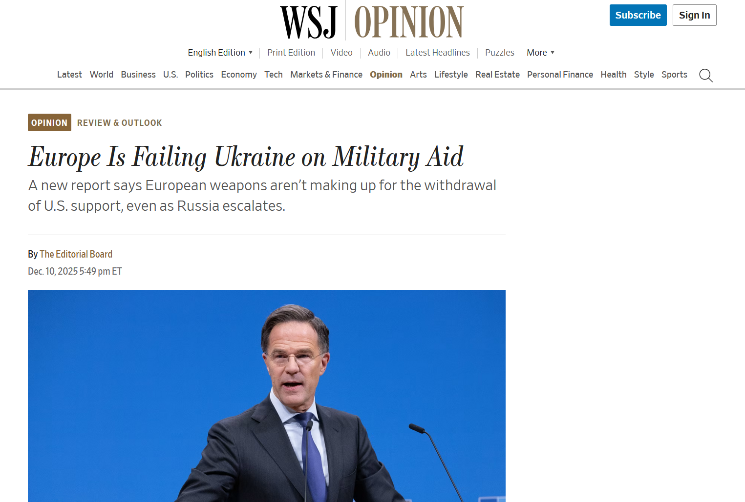 В свою очередь, The Wall Street Journal обращает внимание, что Европа «подводит Украину в вопросе военной помощи».