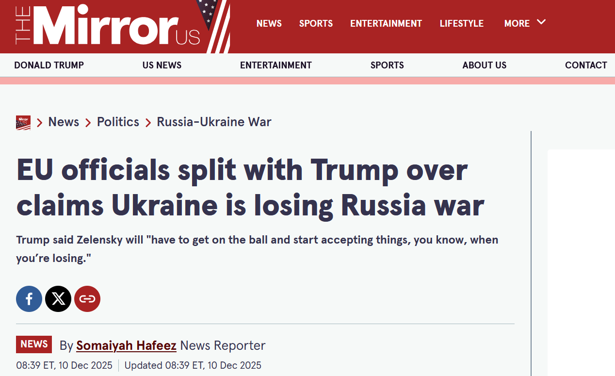 - «Официальные лица ЕС разошлись во мнениях с Трампом, заявившим, что Украина проигрывает войну с Россией»