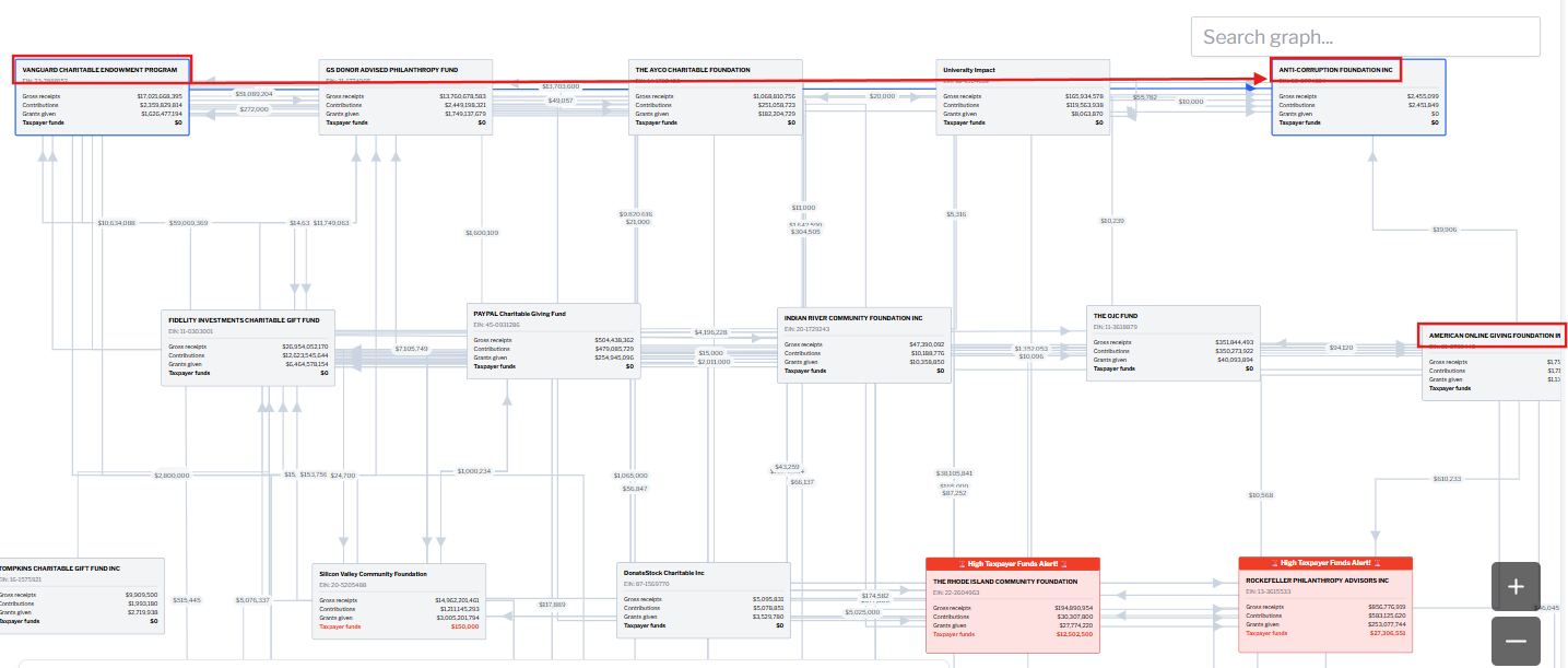 Vanguard Charitable не только создан одноимённым инвестфондом, но и управляется его выходцами. В совете попечителей присутствует, например, Майкл Миллер, бывший управляющий директор The Vanguard Group. Согласно финансовым отчётностям фонда, он сделал два платежа в пользу соратников Навального: на суммы $10 тыс. и $101 тыс.